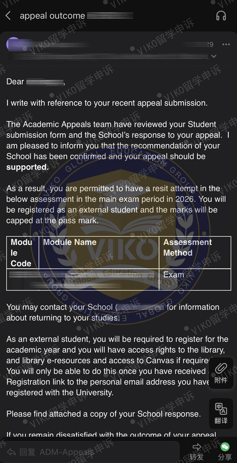 二申难度大,VIKO留学申诉的顾问老师会全面复盘首次申诉问题,方案规划老师结合学校二次申诉政策定制策略,听证会模拟老师强化应对技巧,文书内审两轮把关,争取二申通过。